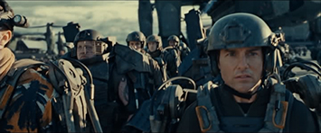 Situation de l’extrait - Dans un futur proche des hordes d'extra-terrestres extrêmement organisés, les « mimics », envahissent l'Europe. Une coalition de dix-sept nations est formée pour combattre les mimics. En cinq ans, cette guerre mondiale fait des millions de victimes. Le commandant William Cage (Tom Cruise) est un spécialiste du service de la communication de l'armée américaine. Il est convoqué au quartier général de la coalition, à Londres où on lui annonce qu'il couvrira le lendemain l'opération « Crépuscule » comme correspondant de guerre en immersion parmi les soldats. L'opération Crépuscule consiste à lancer un débarquement sur les côtes françaises.