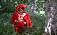 Se servir du trucage de façon visible : le cinéaste dit qu’il truque en même temps qu’il utilise le trucage : le spectateur sait qu’on l’embobine, il peut dire à quel moment il y a eu un truc, un tour de passe passe, et non seulement il l’accepte, mais c’est ce qui lui plaît, comme de voir un magicien faire ses tours . Sorte de clin d’œil du réalisateur au spectateur : un plaisir de la connivence, un plaisir régressif de retourner en enfance et dans le merveilleux des contes, où tout est possible. En même temps ici, le réel est très présent dans le décor naturel de la forêt. Le monde réel est enchanté par certains éléments truqués, par les costumes, et par les chants.