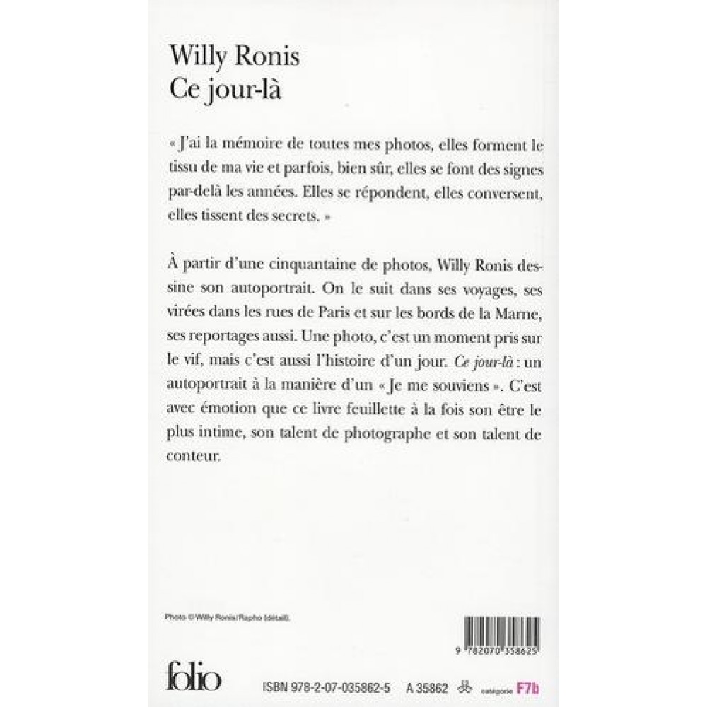 Tout part de la lecture du livre de Willy Ronis, Ce jour-là.