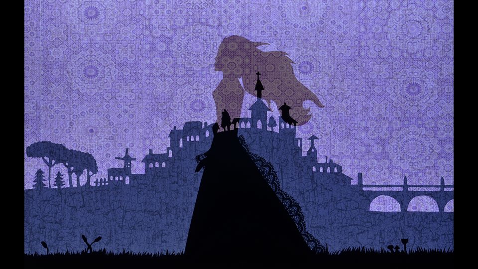 Les silhouettes noires des personnages laissent toute la place au spectateur pour imaginer la beauté irréelle de la Loreley, ses cheveux envoûtants flottant dans le vent comme les ondes frémissent à la surface du Rhin. Les décors, eux aussi découpés finement dans du papier noir, se détachent du fond lumineux à la couleur changeante pour former un univers onirique, entre paysage de conte de fée et réalisme fataliste : le beau château de la Loreley est percé d’arches laissant apercevoir cette dernière, la falaise est rocheuse et abrupte, dangereuse, comme le montre la fin du conte.