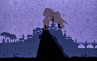 Nous avons également joué avec la lumière pour l'ornementation des figures. Les détails des costumes sont ici produits par la lumière et par la couleur du fond qui dynamisent les formes.
