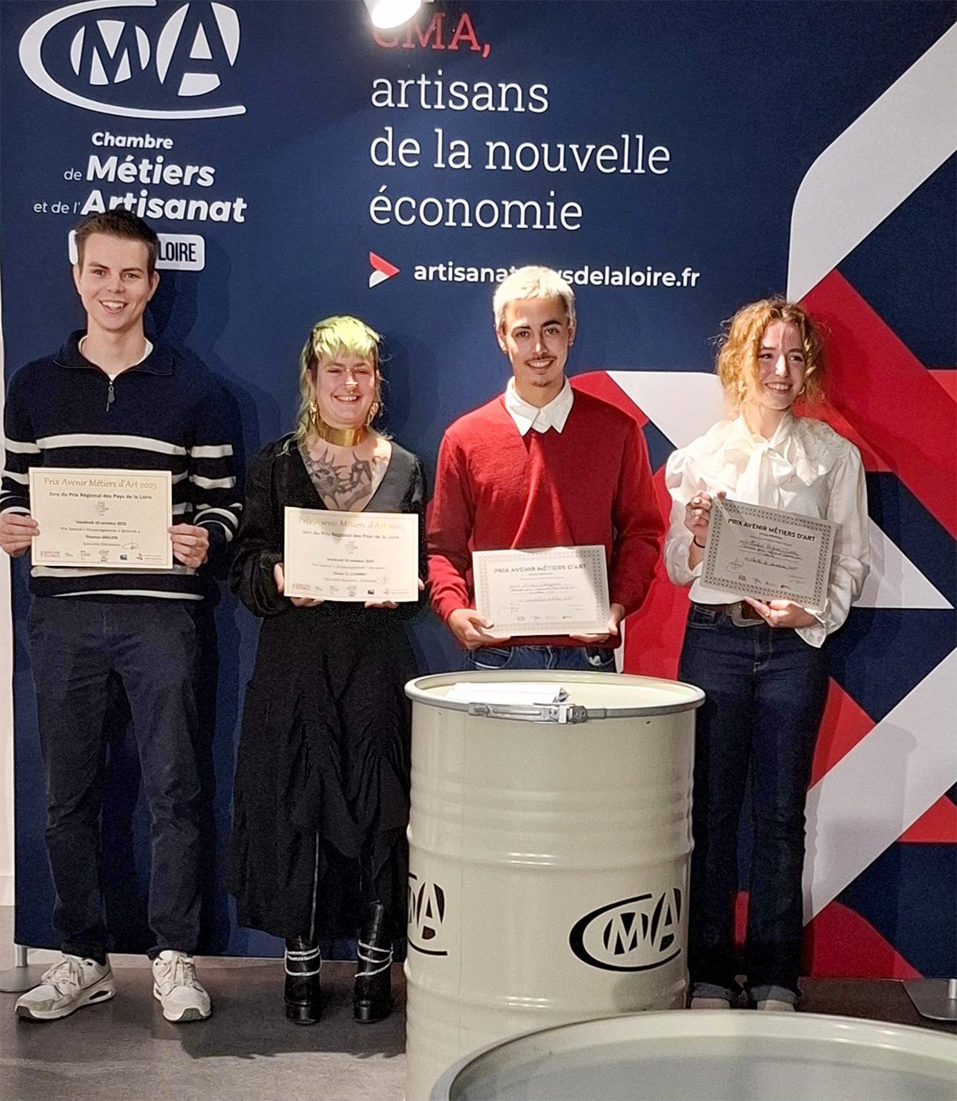Le jury régional du Prix Avenir Métiers d'Art 2025 s’est réuni le vendredi 10 octobre pour distinguer de jeunes talents dans les domaines des métiers d’art. Ce prix prestigieux, organisé en partenariat avec la Chambre de Métiers et de l’Artisanat des Pays de la Loire (CMA) et l’académie de Nantes, récompense l’excellence, la créativité et la maîtrise des savoir-faire artisanaux. Deux prix et deux distinctions pour nos jeunes ligériens. (photos ICI)