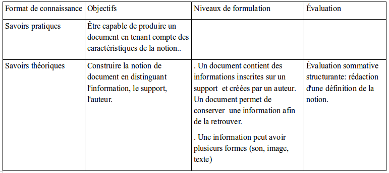 L’évaluation peut être de deux types : soit des questions portant sur l’usage des documents par les élèves, soit une question ouverte leur demandant de définir la notion de document.