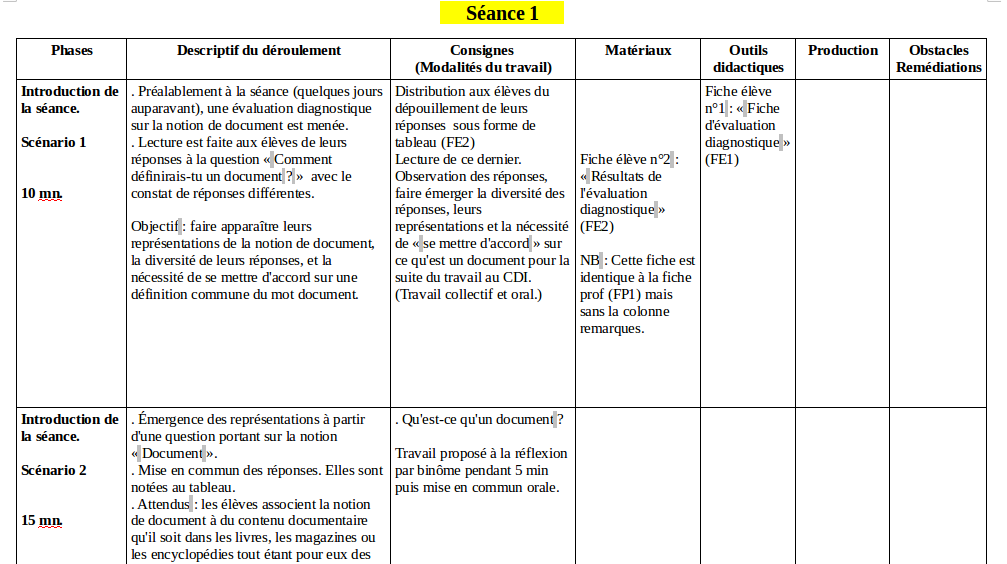 Préalablement à la séance, une évaluation diagnostique sur la notion de document est menée. Voir fiche évaluation diagnostique (FE1).