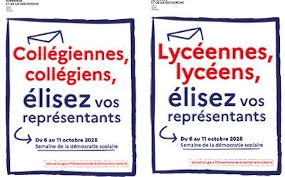 Les élections des représentants de parents d’élèves et des délégués lycéens constituent des rendez-vous essentiels de la vie scolaire. Afin de valoriser et de promouvoir cet engagement citoyen, la Semaine de la démocratie scolaire a été instaurée. La semaine de la démocratie scolaire a lieu du 6 au 11 octobre 2025.