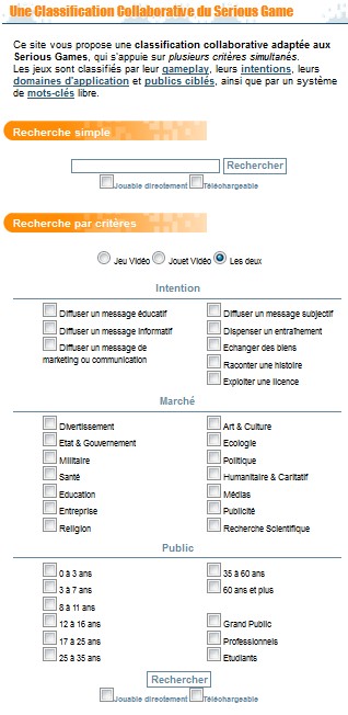 Publié le 21 octobre 2013 site de classification collaborative des serious games Le 21 octobre 2013 cliquer sur l'image pour accéder au moteur de recherche
