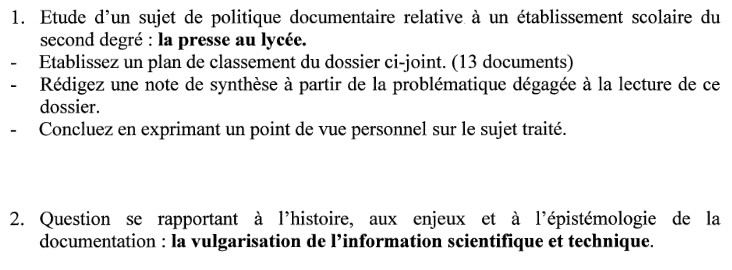 Sujets Capes Externe Documentation 2014 : Deuxième partie du sujet de l'épreuve prenant appui sur un dossier
