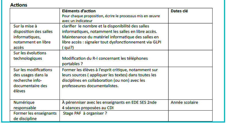 2.2 en juin 2017 Élaboration, par les professeures documentalistes d'un questionnaire diagnostique, validé par M.Sachet.