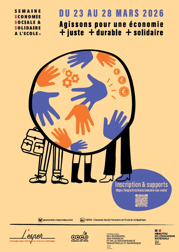 Cette semaine, inscrite au calendrier de l’Éducation nationale, a pour objectif de faire vivre et découvrir les valeurs et principes de l’ESS en classe, à travers notamment la rencontre avec des professionnels ou bénévoles d’associations, mutuelles, coopératives et fondations.