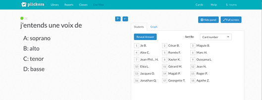 En classe, les questions sont affichées en direct et les élèves choisissent la bonne réponse puis le professeur scanne avec un smartphone ou une tablette connectés à internet les cartes obligatoirement en portrait.