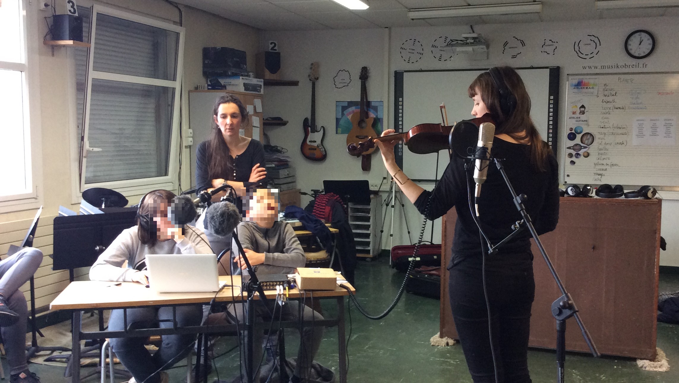 La classe de 5ème2 du collège Rosa Parks (Nantes) a pu travailler durant deux jours avec les artistes Carla Pallone et Aude Rabillon, autour d'une création de musique concrète.