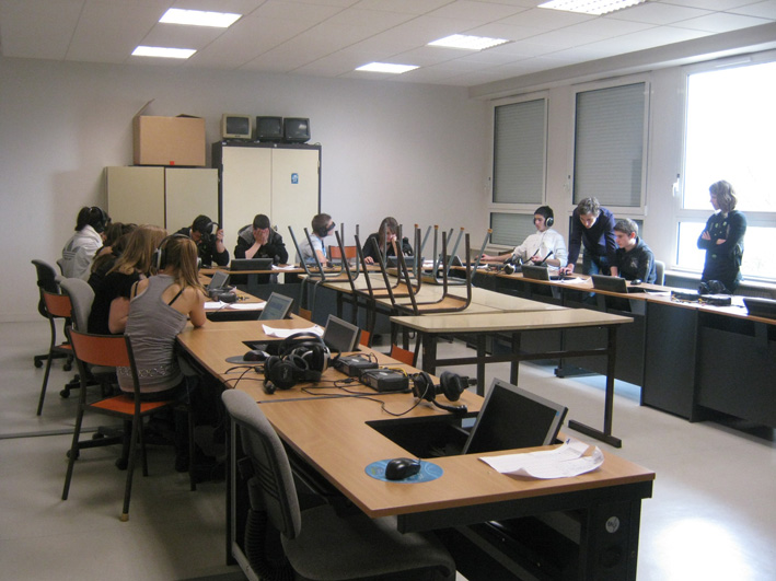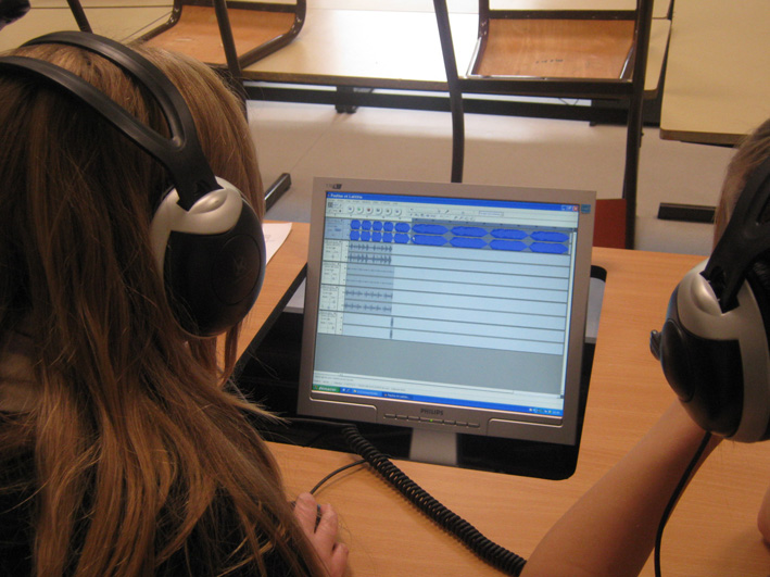 Les élèves se sont ensuite familiarisés avec les différents outils d'enregistrement mis à leur disposition. Puis en deux groupes ils ont réalisé des prises de son, soit à l'extérieur dans le bourg de Donges, soit dans le collège. Les élèves ont dû référencer leurs différents enregistrements.