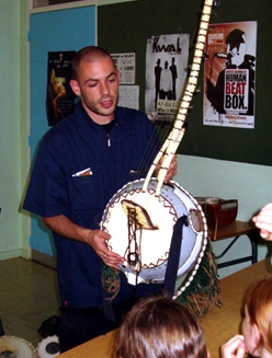 Violoniste de formation (conservatoire d'Angers), aux goûts très éclectiques et d'une grande curiosité, il s'est initié au fonctionnement de nombre de ces instruments. Nous avons pu ainsi apprécier le son du rebab, du sitar, du sarangi, du morin-hur de Mongolie (qu'il utilise d'ailleurs lors de ses concerts), de la kora...., mais aussi d'instruments à percussion comme le balafon, le tambour parleur, la sanza, la tabla....