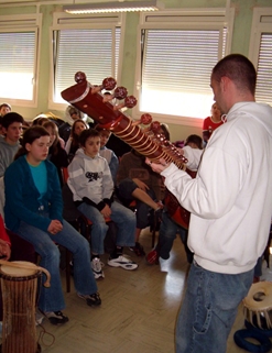 KWAL, jeune rappeur angevin programmé dans le cadre des spectacles de La Pierre Bleue (région de Nozay), est venu présenter à tous les élèves de 6ème, à raison d'une heure par classe (5 classes), les instruments rapportés de ses nombreux voyages au Proche-orient, en Afrique et en Asie.
