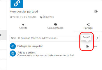 Finalement, copier le lien qui peut maintenant être transmis directement aux destinataires.