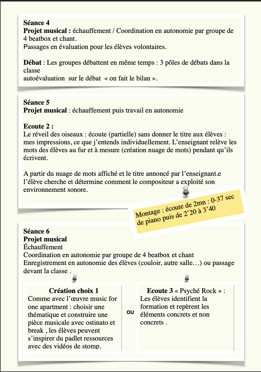 Séquence de cycle 4 pour un niveau troisième qui aborde la problématique “Comment exploiter son environnement sonore pour composer?”