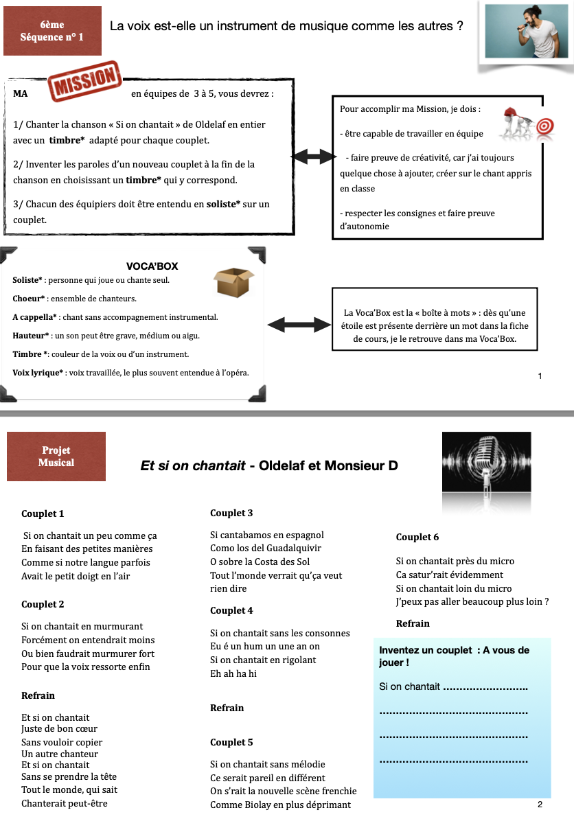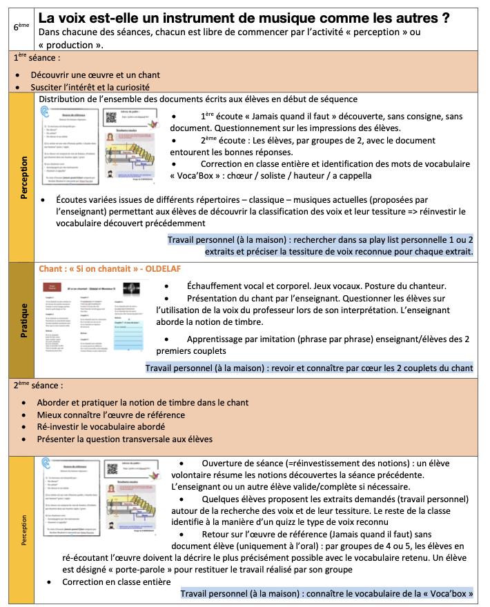 L'idée principale de cette séquence consiste à faire découvrir la voix à des élèves de sixième.