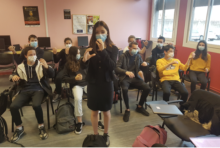 À la manière du "Mannequin challenge", tous les élèves de la classe établissent la partition d'une musique. Chaque geste et émotion véhiculée doit être une traduction/interprétation du geste musical entendu. Une caméra vient filmer au fur et à mesure de l'écoute les différentes positions statiques afin de retranscrire la "partition" du morceau.