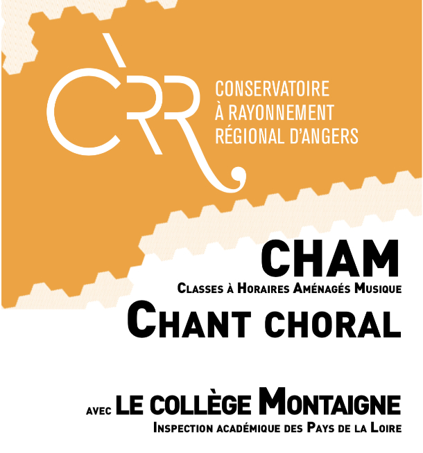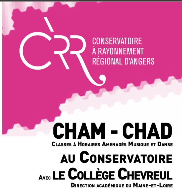 Deux collèges partenaires du Conservatoire à Rayonnement Régional d’Angers, ont mis en place des classes CHAM. Le collège Chevreul possède une CHAM instrumentale et danse, le collège Montaigne une CHAM vocale. Les deux établissements ont le même professeur d’éducation musicale, JF Mialot à raison de deux ou trois heures par semaine, il assure également la coordination entre le CRR, la ville d’Angers et l’éducation nationale.