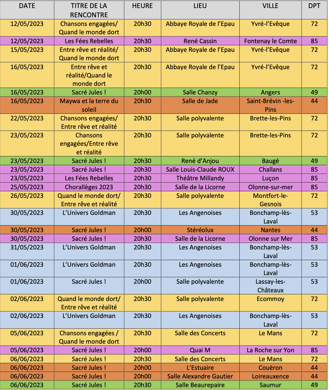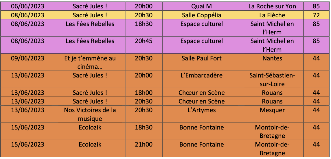 10 autres projets avec 21 représentations : 3 dans le 44, 1 dans le 53, 4 en Sarthe et 2 en Vendée