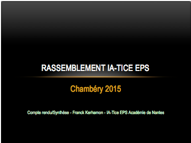 Ceci est un compte rendu et une synthèse relatant toutes les interventions du rassemblement IA-Tice EPS de Chambéry 2015 concernant de nombreuses innovations et expérimentations réalisées dans les différentes académies.