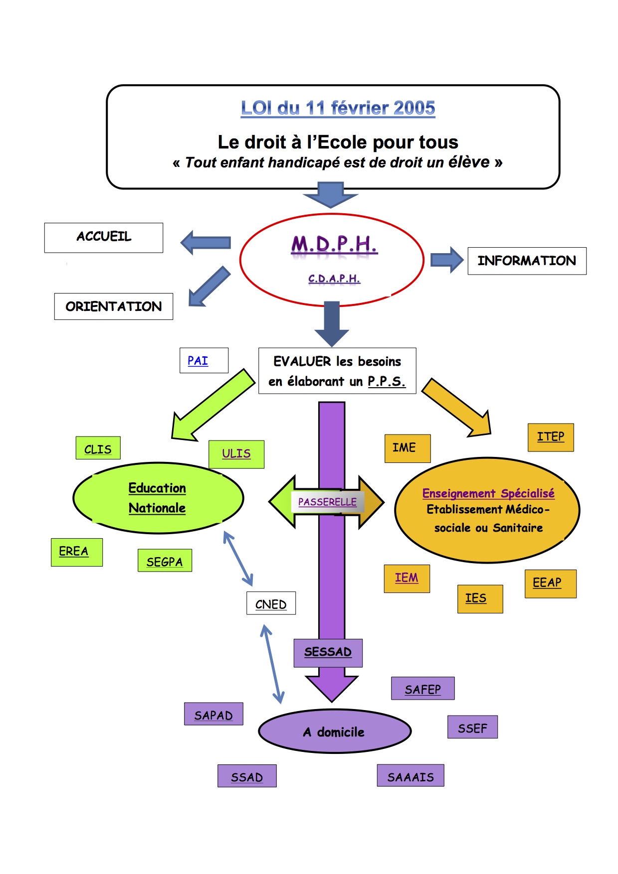 Le schéma présenté a pour vocation d’avoir une vision globale et synthétique des sigles concernant un élève en situation de handicap.