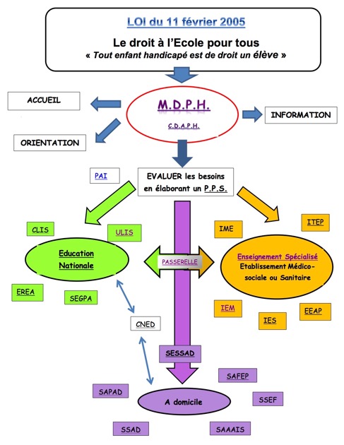Ces informations sont essentiellement extraites du « guide pour la scolarisation des enfants et adolescents handicapés 2012 » Ministère de l’Education 2012.