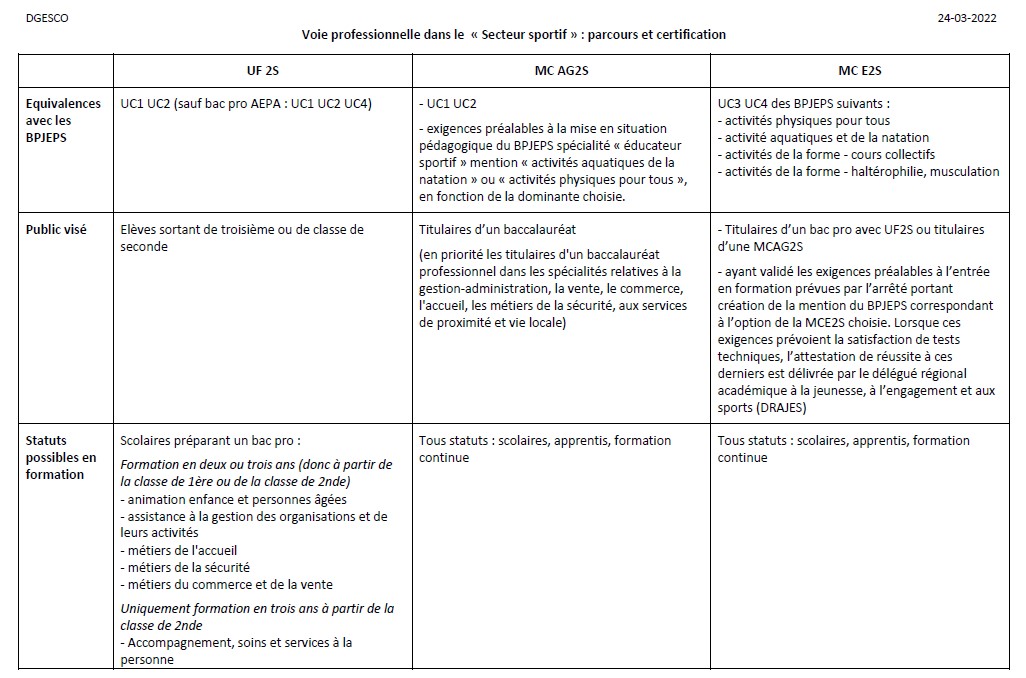 > tableau de synthèse parcours et certification voir professionnelle secteur sportif> voie pro secteur sportif, présentation Bernard André