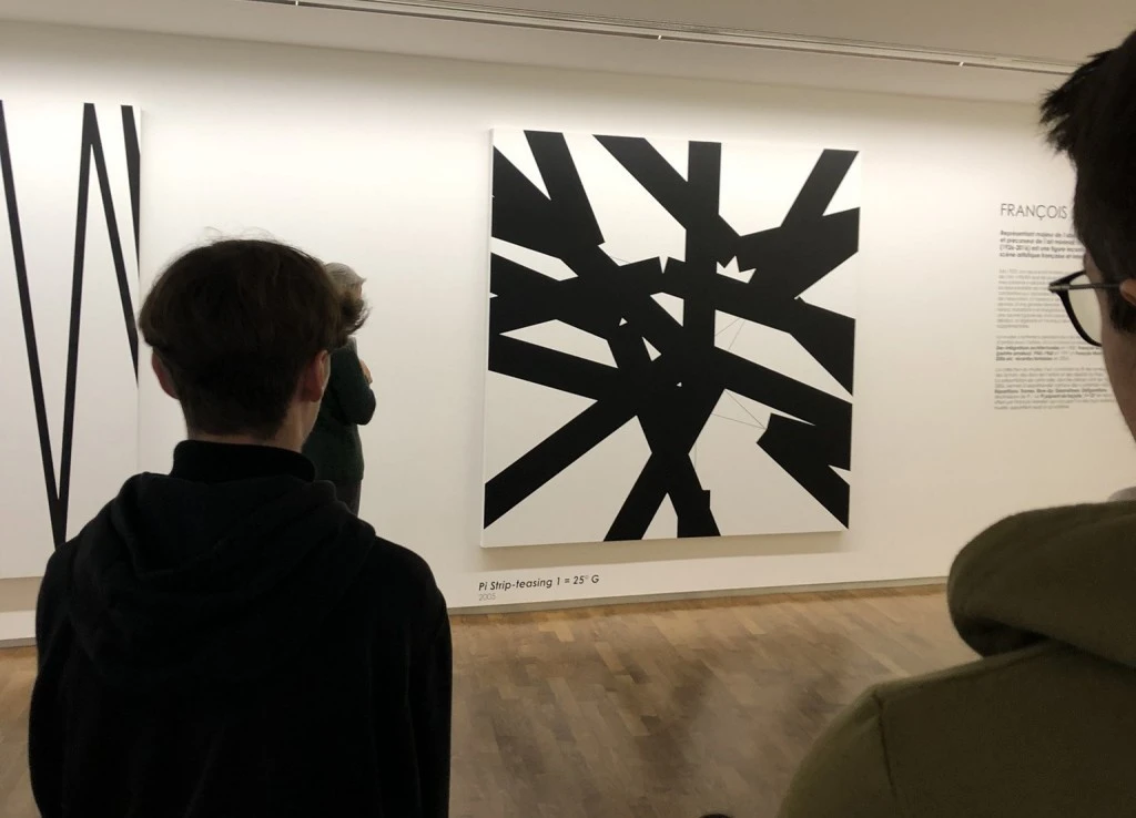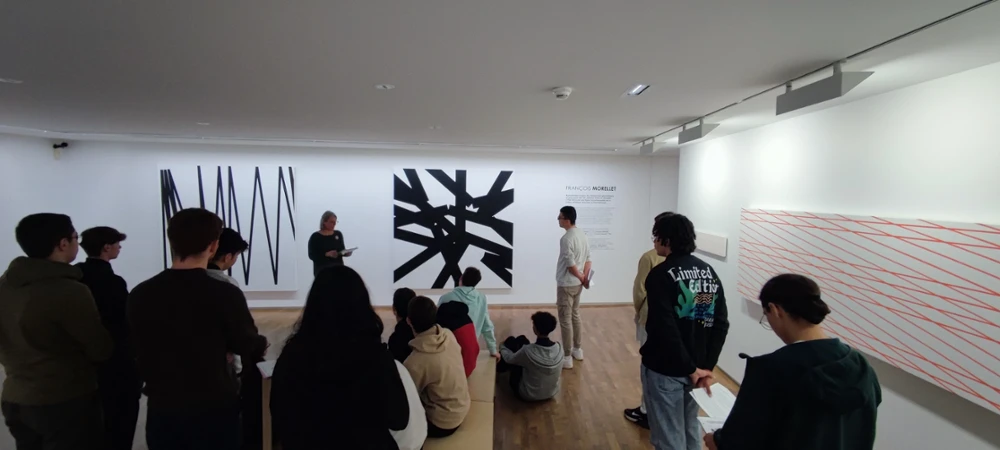 la médiatrice a présenté François Morellet, sa vie à Cholet, certaines de ses oeuvres et des “systémes” qu’il a essayés de développer dans son art ; la visite a été dynamique et le groupe s’est montré intéressé, utilisant dans le dialogue avec le médiateur des termes de transformations géométriques qui lui étaient inconnues, les obligeant parfois à vulgariser leurs interventions ;