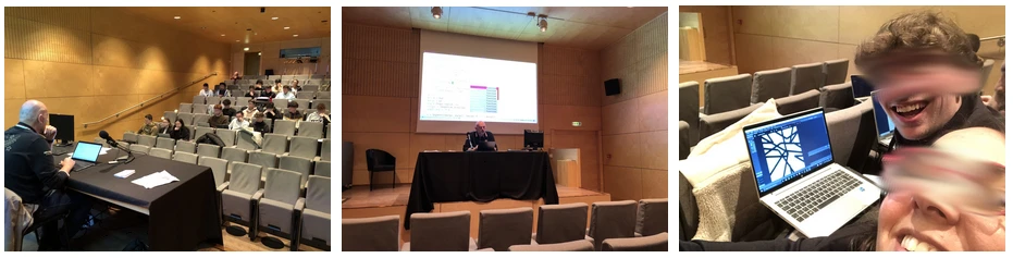 travail sur 2 codes Python à compléter pour reproduire deux des œuvres vues avec le médiateur : “Pi piquant” et “Pi strip-teasing 25G”. Le code se fait directement dans l’amphithéâtre du musée, réservé pour l’occasion.