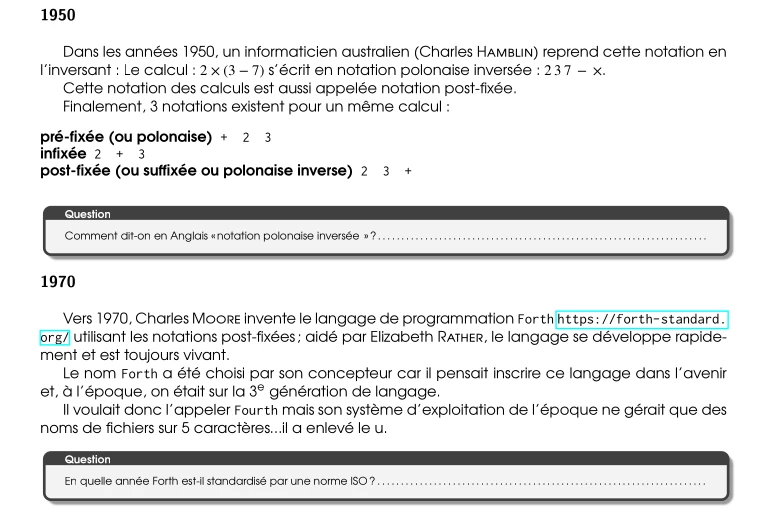 La première partie invite à explorer l’histoire du calcul post-fixé. Par exemple :
