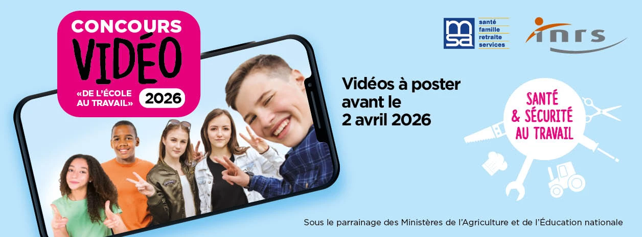 L’INRS (Institut national de recherche et de sécurité) organise en partenariat avec la CCMSA (Caisse centrale de la mutualité sociale agricole) la 14e édition du concours vidéo « santé et sécurité au travail : de l’école au travail ».