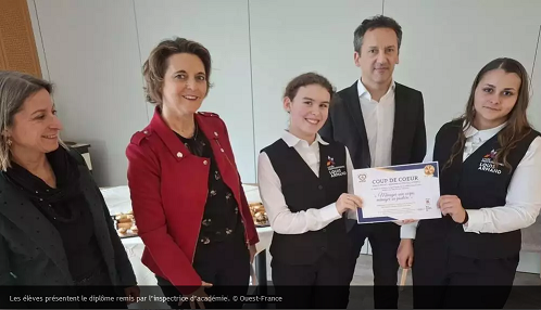 Le projet réalisé par les élèves de la section hôtellerie restauration du lycée Louis Armand de Machecoul se voit remettre le « COUP de COEUR » du comité de validation.