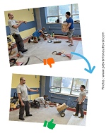 - Une 2ème mise en scène : support visuel présentant la même situation avec les mesures de prévention apportées et les justifications associées