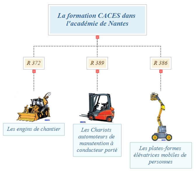 La formation CACES ( Certificat d'Aptitude à la Conduite en Sécurité) concerne les professeurs des filières professionnelles s'engageant à assurer la formation et/ou les recyclages auprès des élèves.