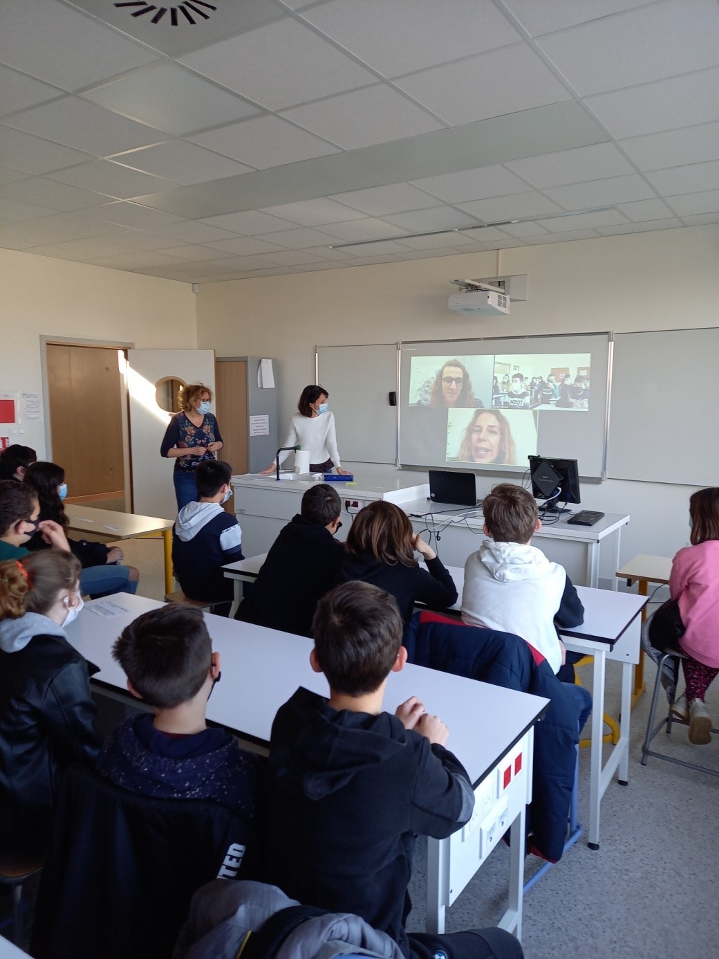 Ce mardi 23 mars, nos élèves ont eu la chance d'échanger durant une heure avec Athenea Mata lui posant des questions sur sa vie et sur le film. Cette rencontre très attendue par les élèves fut riche en émotions. La spontanéité et la joie de chacun à y participer ont rendu ce moment de partage mémorable et représentatif de notre projet.