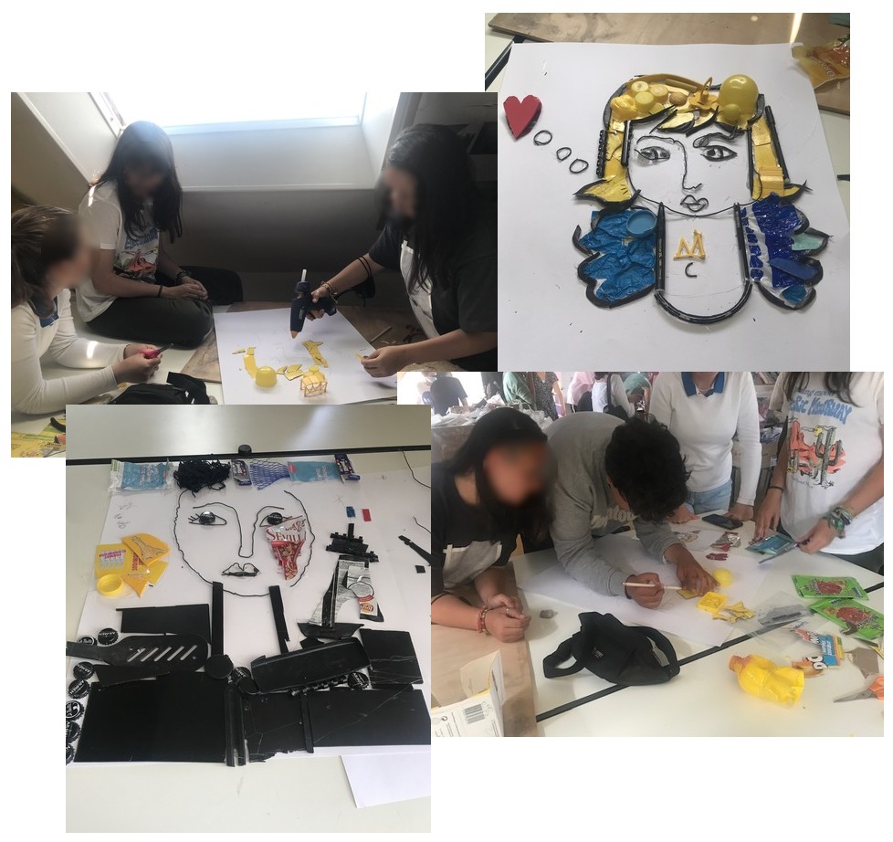 Pour sensibiliser nos élèves aux enjeux environnementaux et devenir des éco-citoyens responsables, ils ont à leur tour créé des tableaux célèbres à partir d’objets de récupération. En parallèle ils ont créé ensemble des affiches de sensibilisation qui ont servi à la réalisation d’un vidéoclip des gestes éco-responsables. Ces deux réalisations finales ont fait l’objet d’une séquence sur l’environnement et l’art, de rencontres franco-espagnoles sur le Twinspace, de la création d’activités pour les partenaires et d’une journée de ramassage des déchets dans les deux environnements.