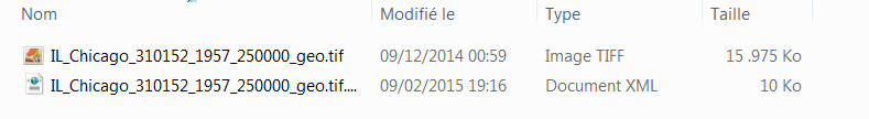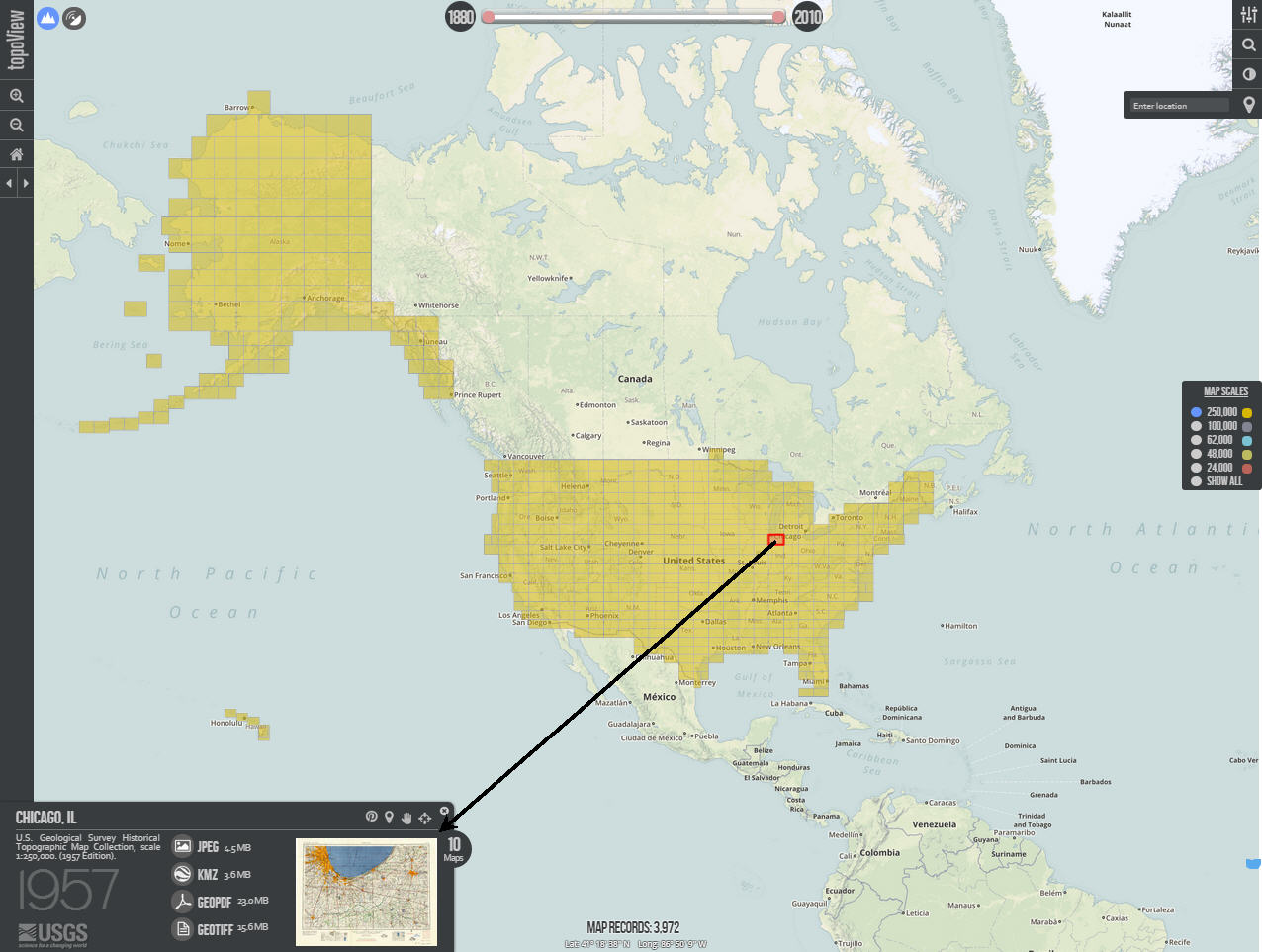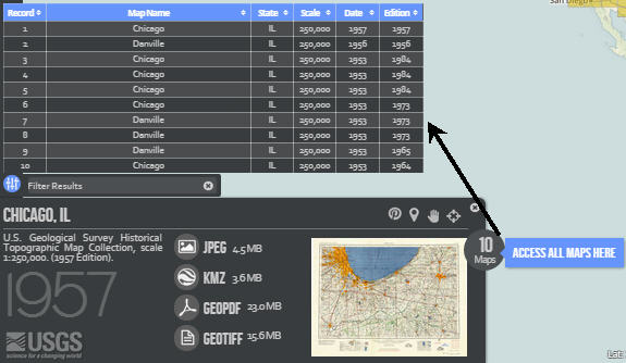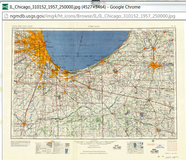 En cliquant sur la zone de Chicago, on obtient une première carte topographique ancienne de 1957 disponible en 4 formats.