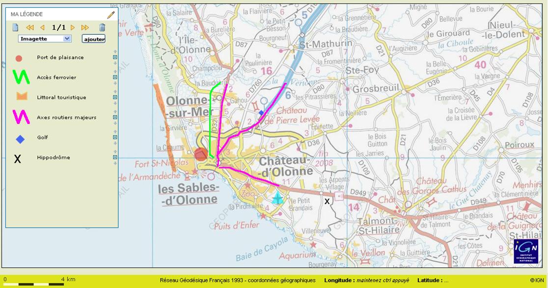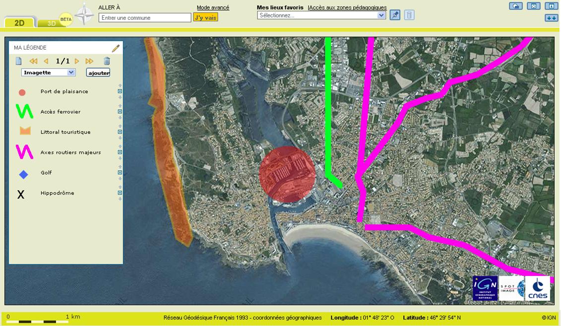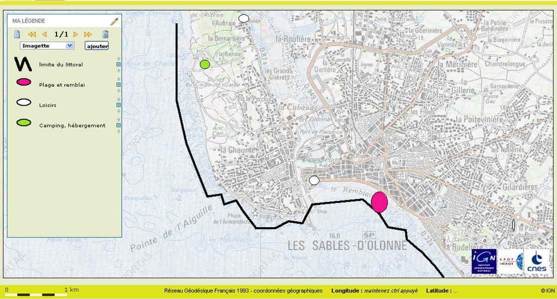 Les élèves peuvent donc modifier la transparence de l'image,, choisir la couche photographique ou cartographique, changer d'échelle....(voir document 4, même croquis que document 2 mais avec changement d'échelle et changement de couche)