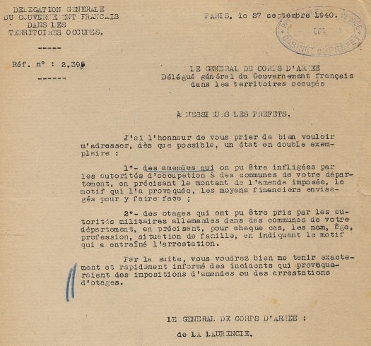 - lettre du Délégué général du gouvernement français dans les territoires occupés
