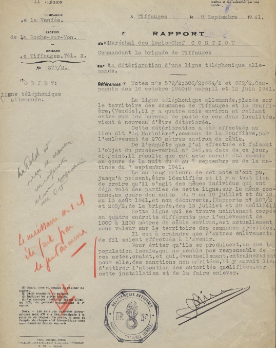 - rapport de gendarmerie sur la déterioration d'une ligne téléphonique allemande