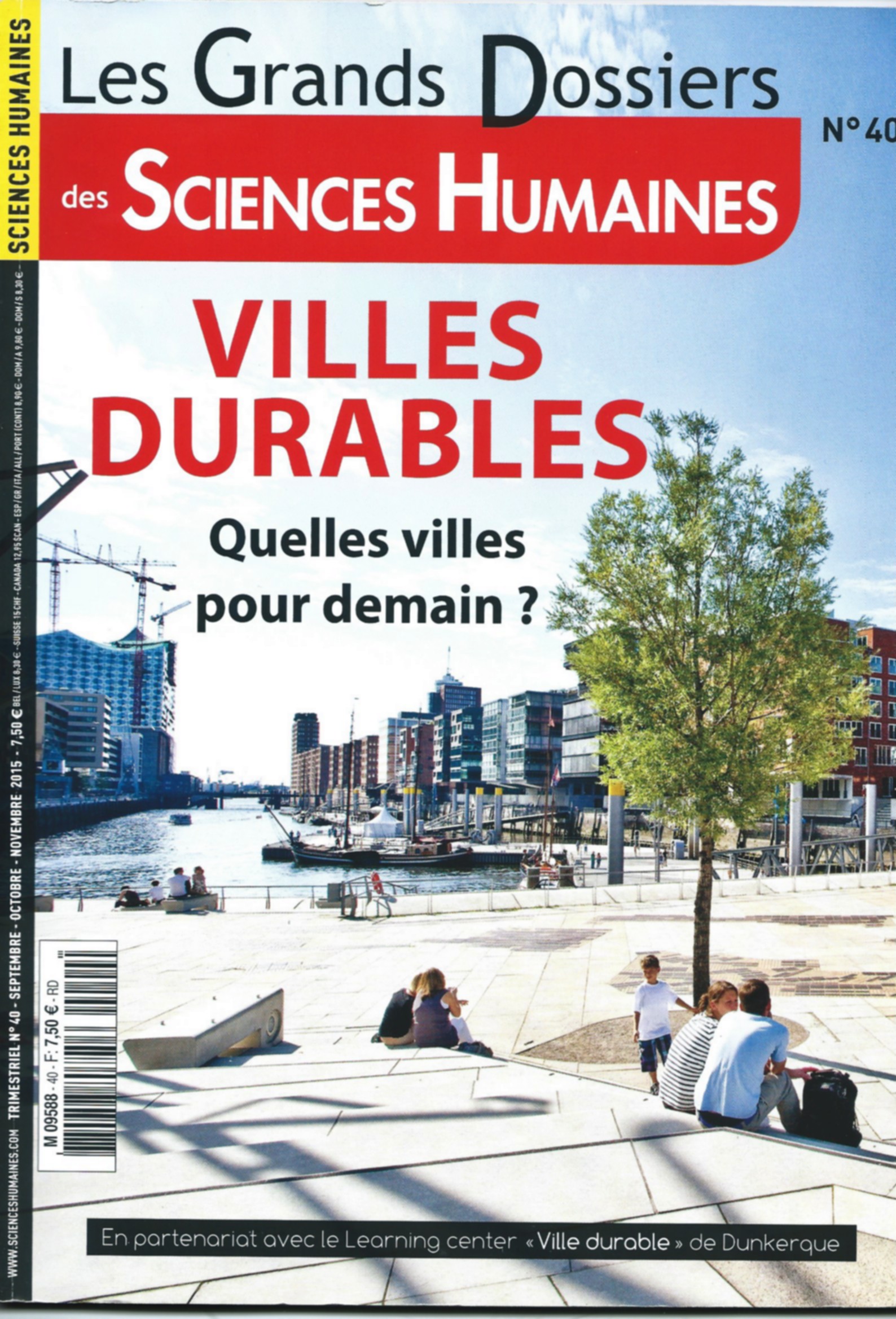 La revue Sciences Humaines a consacré son grand dossier N° 40 Septembre, Octobre, Novembre 2015, aux villes durables. Ce dossier est une excellente mise à jour pour les enseignants qui ont la question des villes et du développement durable dans leurs programmes. Il a été élaboré en partenariat avec le Learning Center "ville durable" de Dunkerque.