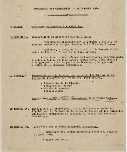 7 - Programme des cérémonies de Nantes Le 22 octobre 1944.