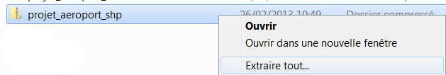 Après avoir téléchargé les données shapefile depuis l'open data, il faut les décompresser dans un répertoire spécifique (extraire tout).