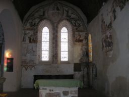 - peintures murales évoquant le rôle de l'Eglise : cycle de Saint Vigor à Neau (13ème siècle).