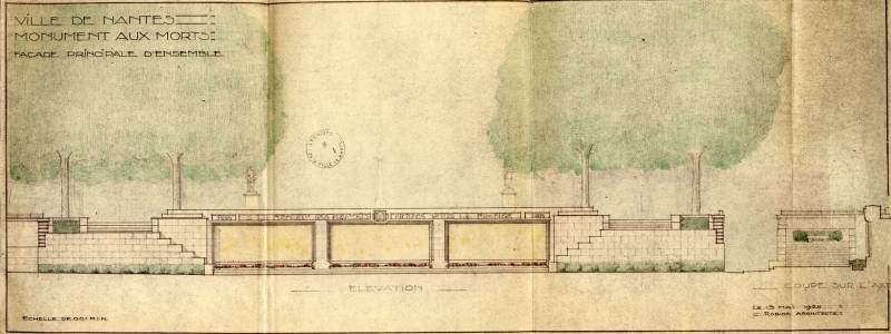 Divers projets sont esquissés (doc. 4) par l'architecte Robida, grand mutilé de guerre, proche des associations d'anciens combattants. Conformes aux vœux du maire, ce sont les trois tables mémoriales (doc. 5) qui sont définitivement retenues.