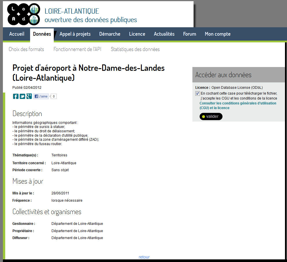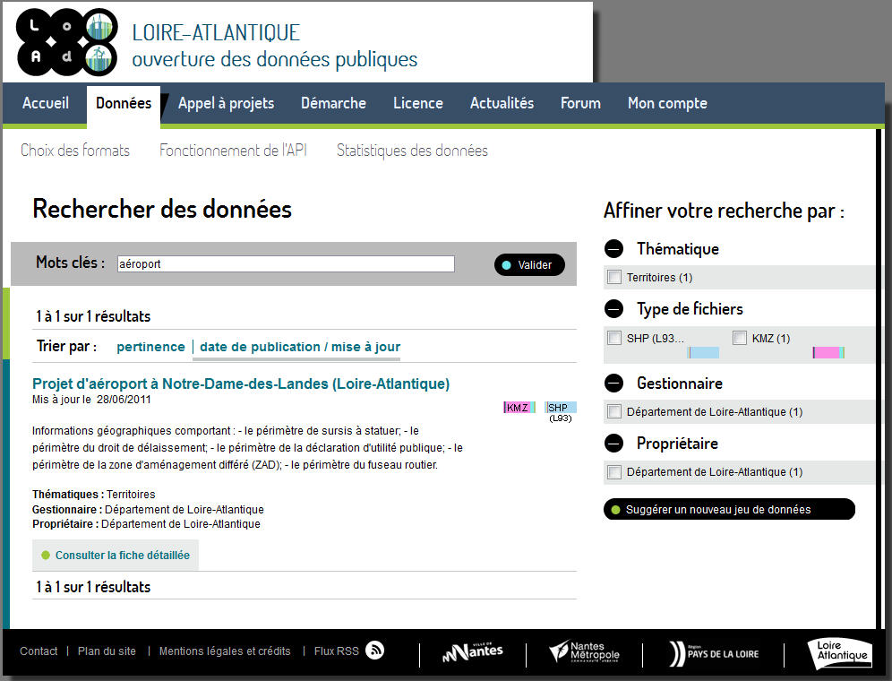 La Loire Atlantique propose depuis quelque temps son "open data" dont les ressources sont accessibles gratuitement.