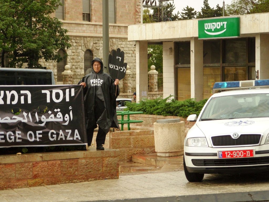 Cette scène se reproduit tous les vendredis après-midi à un carrefour du centre d'affaires de Jérusalem-Ouest. Depuis plus de 20 ans des femmes israéliennes profondément pacifistes dénoncent la colonisation des Territoires occupés. Elles sont très peu nombreuses et se font régulièrement injurier par d'autres Israéliens. Ce qui explique le véhicule de police à proximité.
