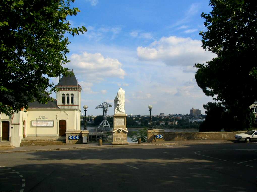 Chantenay la bretonne : la statue de Ste-Anne dominant le port (avec le musée Jules Verne).