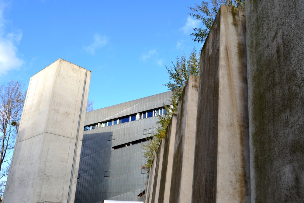 L'architecture du musée juif de Berlin en forme de trait de foudre, est faite pour suggérer l'absence, le vide, le vertige créés par l'anéantissement de la communauté juive de Berlin pendant la deuxième guerre mondiale. Le musée présente les origines et la vie des juifs berlinois avant la deuxième guerre mondiale. Les dernières salles sont consacrées aux procès des criminels nazis de l'après guerre et à leurs limites.